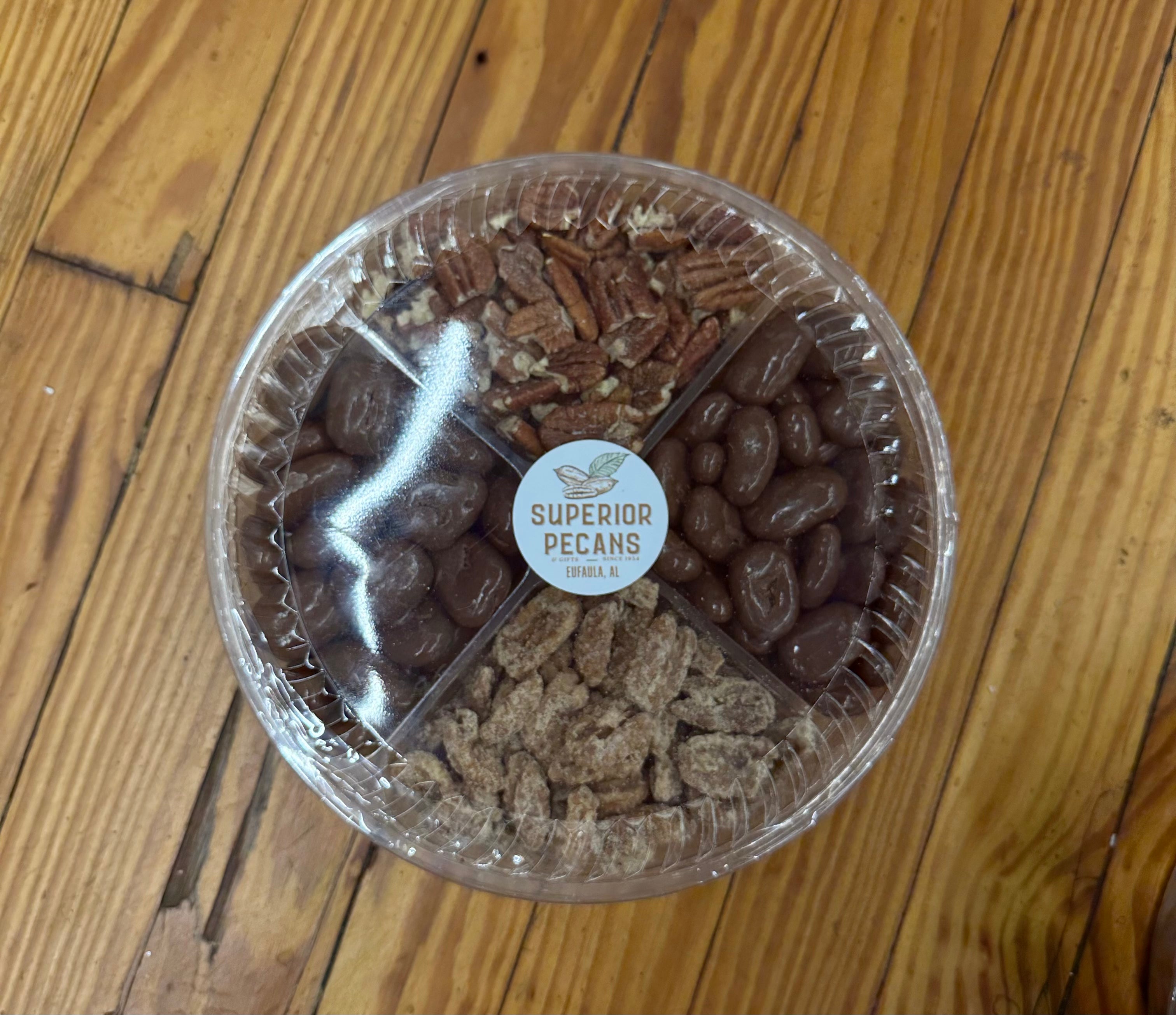 This generous 3-pound tray brings together the very best of what we have to offer—a carefully curated selection of our finest pecans in all their glory. Whether you're looking to impress loved ones during the holidays or treat yourself to something special, this assortment delivers warmth, elegance, and that unmistakable pecan perfection that makes every occasion feel a little more meaningful. It's the kind of gift that says you care.