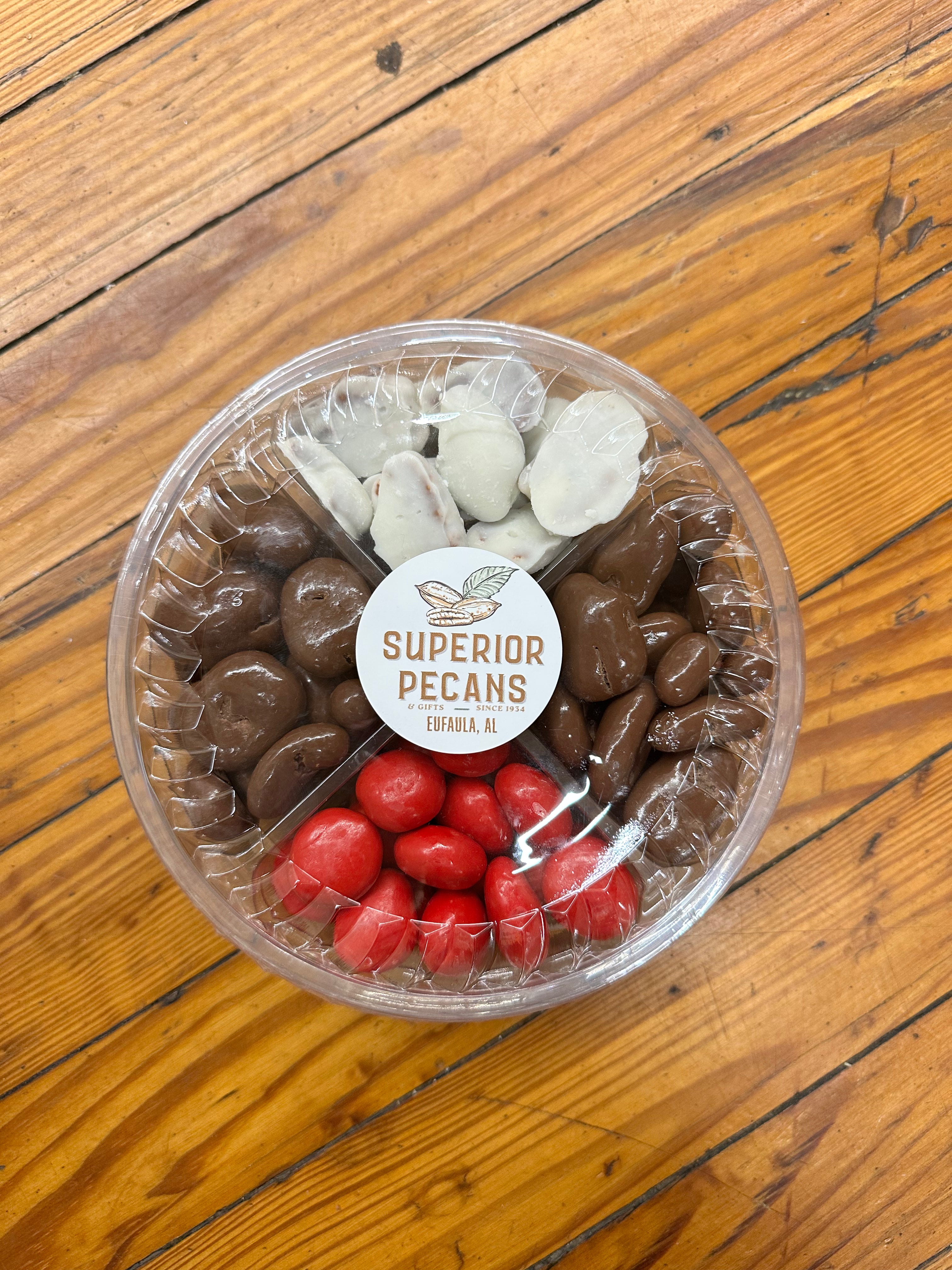 Christmas Tray - Milk, Dark, White Chocolate Pecans and Red Chocolate Cherries
